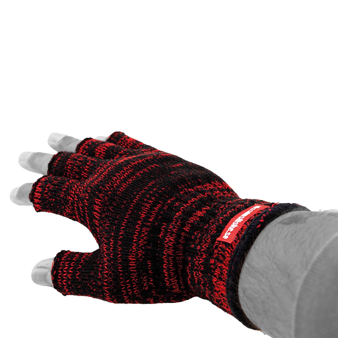 Olssons Fiske Wool Fingerless Gloves Black/Red