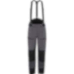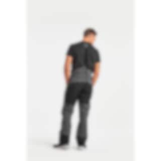 Didriksons Fractus är en teknisk 3-lagersbyxa i stretchväv, 100% vattentät både i material och konstruktion. På knän, i benslut och baktill är byxan förstärkt med Corduratyg. Passformen är ergonomiskt skuren för maximal rörelsefrihet. Linningen är förhöjd baktill, och insidan av denna är försedd med neopren. Midjebredden kan justeras med kardborre. Det finns även hällor i midjan om man föredrar att använda bälte. Breda hängslen ger bra support och kan tas av vid behov. Gylfen är försedd med blixtlås och knappar. En kil i gylfen ser till att den är helt vattentät. Bensluten är försedda med kardborrejustering, och en metallkrok framtill säkrar ihop byxan med skorna. Framtill har byxan två rejäla fickor med bälg och YKK Aquaguard® blixtlås. Inuti den högra fickan sitter en mindre ficka i nät för att hålla mobiltelefon och mindre prylar på plats. Alla logotyper på byxan är av reflextyp. Vattenavvisningen är PFC-fri.
